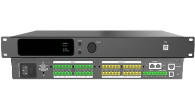 這是一款16進16出的自動混音多媒體矩陣主機 ,配備16路模擬輸入和16路模擬輸出, 內置回饋抑制、自動混音、矩陣混音、等化器、分頻器、壓縮器、AGC(自動增益)AEC(回聲消除)、ANC(雜訊消除)等DSP功能。